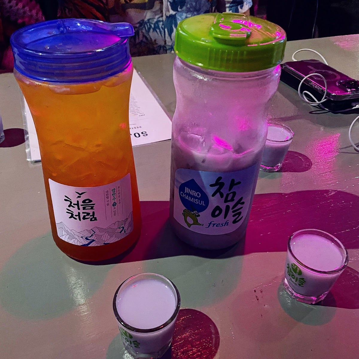 I went for the first time tonight and I will say this is one of my new favorite spots! My group ordered 2 flavors of soju cocktail lilikoi (passion fruit) and yogurt, both flavors were very tasty and are large enough to share. Also ordered some honey garlic wings, kimchi fried rice, and spicy mochi, tasty as well. I will suggest ubering here because you will have such a good time! I enjoyed the music inside with modern kpop and hip pop and even more so the private karaoke room. Me and my friends sang so many songs we ran out of our cash. To add to the good times, this place stays open late. Enjoy if you visit this place!